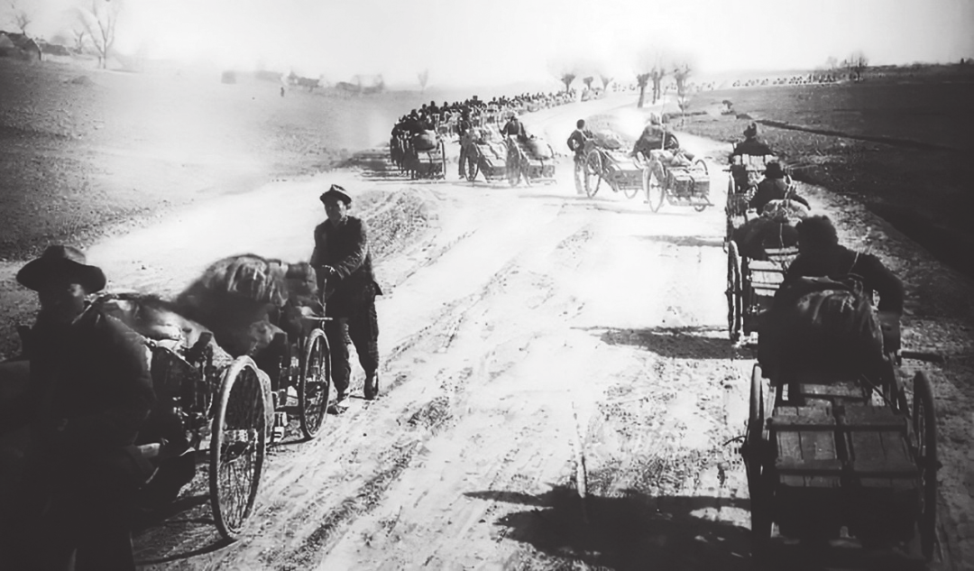 在“參軍保田”的口號(hào)下,大批青壯年農(nóng)民潮水般涌入人民軍隊(duì),并竭盡所能保障解放軍作戰(zhàn)。遼沈戰(zhàn)役勝利是東北人民全力支援拼出來的,淮海戰(zhàn)役勝利是老百姓用小車推出來的,渡江戰(zhàn)役勝利是老百姓用小船劃出來的。僅東北解放戰(zhàn)爭(zhēng)期間,就有160萬東北民眾參軍;淮海戰(zhàn)役中,動(dòng)員起來的民工累計(jì)達(dá)543萬人,向前線運(yùn)送1460多萬斤彈藥、9.6億斤糧食等軍需物資;渡江戰(zhàn)役中,2萬多名船工參加戰(zhàn)斗,不少船工穿上“老衣”(按當(dāng)?shù)仫L(fēng)俗為去世的人穿上的衣服),抱著誓死的決心運(yùn)送解放軍“打過長(zhǎng)江去”。正如毛澤東在戰(zhàn)略上所預(yù)見到的:“土地制度的徹底改革,是現(xiàn)階段中國(guó)革命的一項(xiàng)基本任務(wù)。如果我們能夠普遍地徹底地解決土地問題,我們就獲得了足以戰(zhàn)勝一切敵人的最基本的條件!