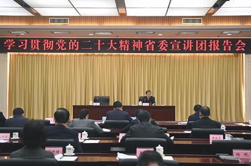 11月10日,學(xué)習(xí)貫徹黨的二十大精神省委宣講團(tuán)報(bào)告會在西安舉行。陜西省委宣講團(tuán)成員,省委副秘書長、省委黨史研究室主任任宗哲作宣講報(bào)告。