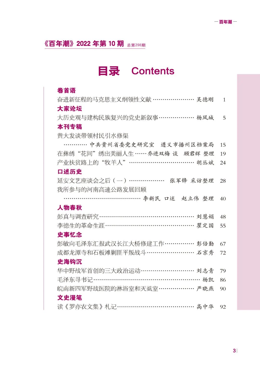 《百年潮》2022年第10期目錄