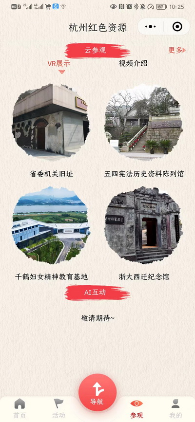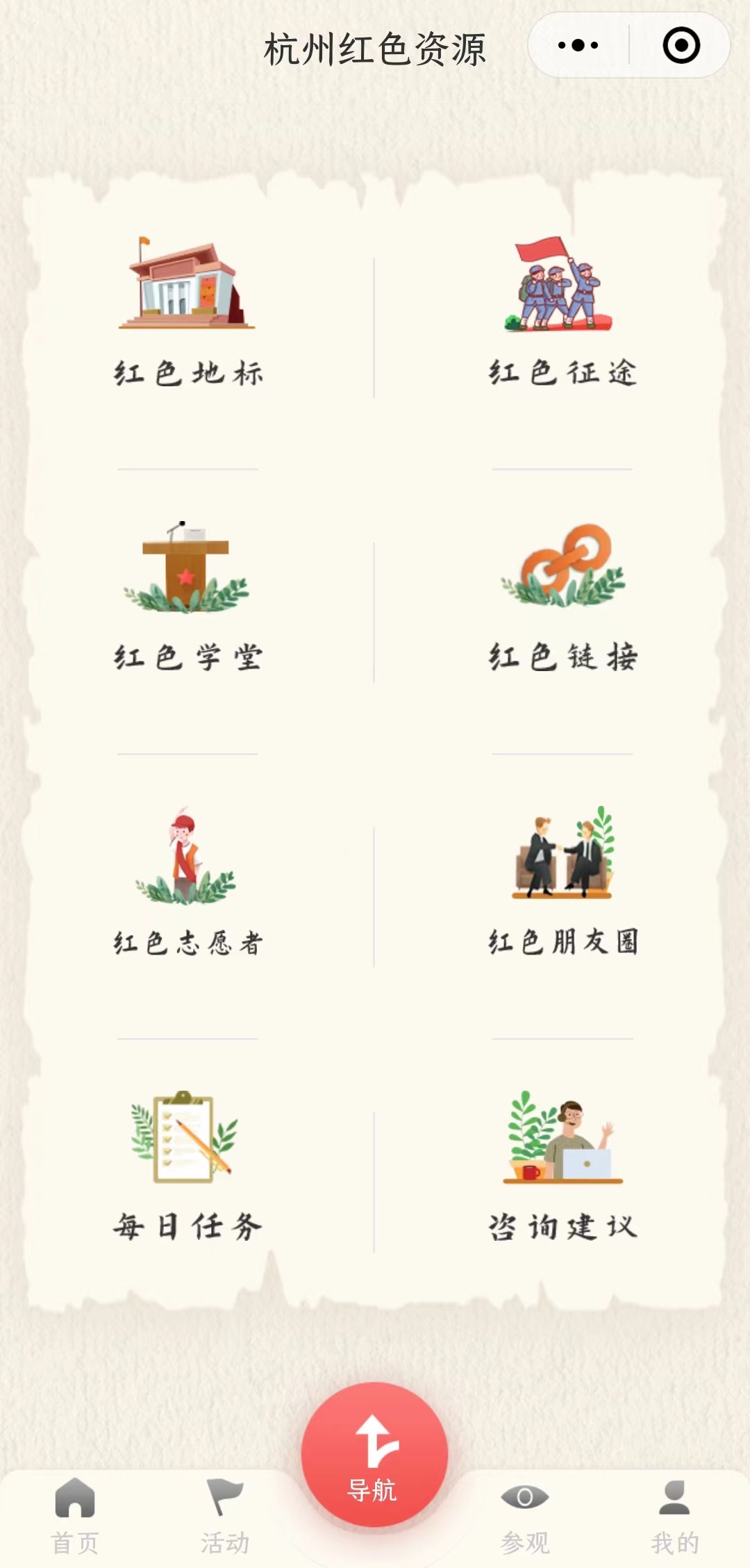 逛場館,走路線,約活動……更有最新資訊、紅色沙龍、專家說史、志愿服務、親子時光、打卡積分、紅色文創(chuàng)等你探索。廣大市民隨時隨地拿起手機掃描二維碼或在微信小程序搜索“杭州紅色資源”,即可進入頁面,或看或聽,或進或出,輕松自如!昂贾菁t色奇妙之旅”線上體驗專區(qū)即將開啟,更多功能等你解鎖……