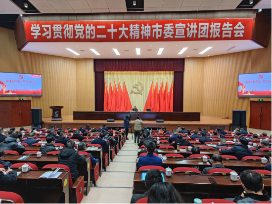 12月5日上午,杭州市桐廬縣召開(kāi)學(xué)習(xí)宣傳貫徹黨的二十大精神市委宣講團(tuán)報(bào)告會(huì)。黨的二十大精神市委宣講團(tuán)成員、市委黨史研究室(市志辦)主任郎健華作報(bào)告。縣四套班子領(lǐng)導(dǎo),法院院長(zhǎng)、檢察院檢察長(zhǎng)和各單位主要負(fù)責(zé)人,以及各界代表等近200人參加。