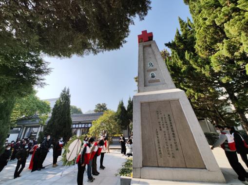 上午10時(shí),學(xué)生、醫(yī)護(hù)等社會(huì)各界代表們手握菊花,默哀一分鐘,悼念死難同胞以及壯烈犧牲的先烈。眼前的紅十字紀(jì)念碑莊嚴(yán)肅穆,哀悼者的腦海中則開(kāi)始閃現(xiàn)蘇克己、謝惠賢、劉中武、陳秀芳等英烈形象。