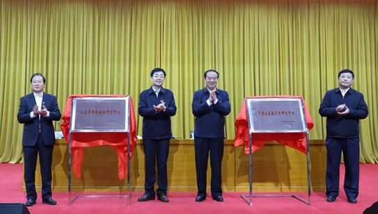 趙國(guó)卿、王煥良等為“山東革命根據(jù)地研究中心”“中共山東地方史研究中心”揭牌。