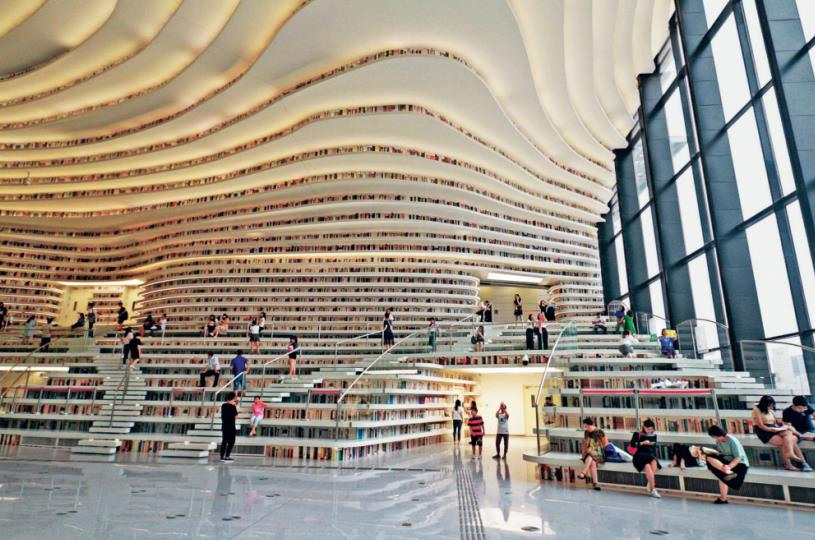 濱海新區(qū)圖書館位于天津濱海文化中心,設(shè)計立意為“濱海之眼”和“書山有路勤為徑”,開館以來一直吸引來自全國乃至世界各地的讀者前來參觀,已成為濱海新區(qū)的文化“新地標(biāo)”。 中新社記者 張道正/攝