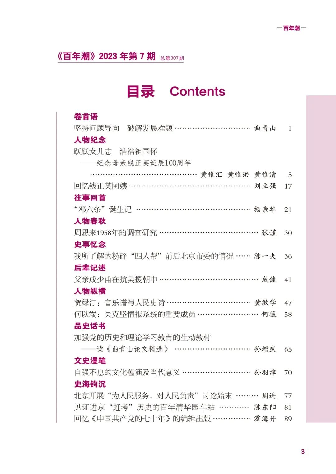 《百年潮》2023年第7期目錄
