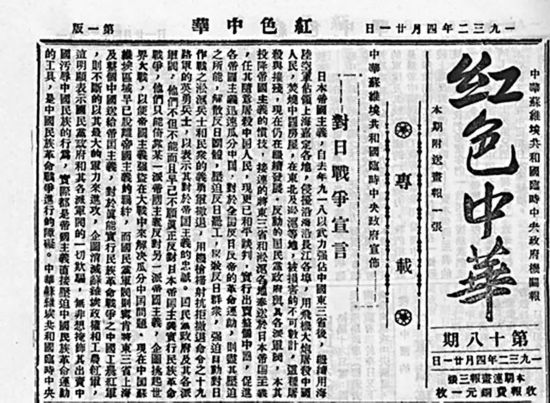 中華蘇維埃共和國(guó)臨時(shí)中央政府《對(duì)日戰(zhàn)爭(zhēng)宣言》