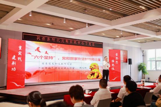 浙江省鄭巖濱理論宣講名師工作室領(lǐng)銜人、臺州市路橋區(qū)社科聯(lián)副主席鄭巖濱以“萬山磅礴看主峰——學(xué)習(xí)習(xí)近平新時代中國特色社會主義思想”為題,圍繞“我們從哪里來、現(xiàn)在在哪里、將到哪里去”三個方面進(jìn)行分享,激情洋溢的宣講,讓在場聽眾備受鼓舞。