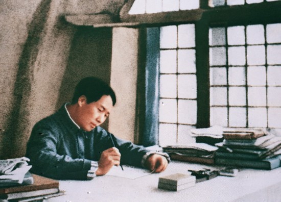 《論持久戰(zhàn)》是毛澤東同志1938年5月26日至6月3日在延安抗日戰(zhàn)爭(zhēng)研究會(huì)的講演。這部著作,處處充滿了辯證法,充滿了唯物主義,是抗日戰(zhàn)爭(zhēng)期間毛澤東同志最重要的軍事論著。圖為1938年,毛澤東同志在延安窯洞內(nèi)撰寫《論持久戰(zhàn)》(資料照片)。 新華社發(fā)