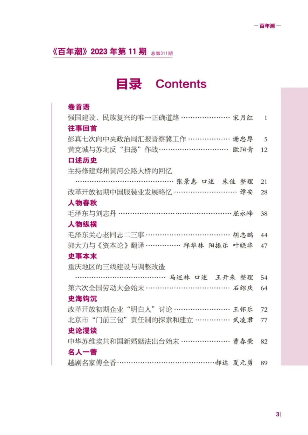 《百年潮》2023年第11期目錄