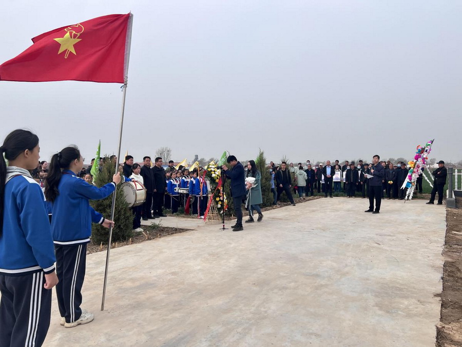 在清明節(jié)來臨之際,為緬懷革命英烈,傳承紅色基因,4月2日,山東省東營市委黨史研究院在丁莊街道劉道村烈士陵園隆重舉行“清明祭英烈”主題黨日暨“追思·為革命烈士畫像”公益活動(dòng)啟動(dòng)儀式。東營市委黨史研究院院長韓松林、副院長李中華,省黃三角農(nóng)高區(qū)組織人事部副部長馬成金,丁莊街道黨工委副書記、辦事處主任孫建國,市直駐廣饒縣下派工作隊(duì)有關(guān)同志出席活動(dòng),市委黨史研究院全體黨員,劉道村“兩委”成員、烈士親屬和黨員代表,丁莊街道中心小學(xué)全體師生參加活動(dòng)。
