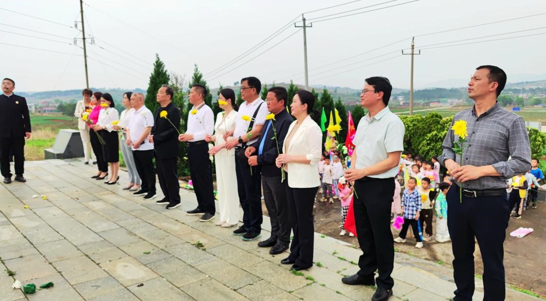4月2日,湖南省衡陽市委黨史聯(lián)絡(luò)組、衡陽市委黨史研究室在祁東縣黃土鋪鎮(zhèn)衡寶戰(zhàn)役烈士紀(jì)念墓碑前,舉行英烈祭掃活動,緬懷革命先烈,表達深切哀思和景仰之情。衡陽市政協(xié)原主席、市委黨史聯(lián)絡(luò)組顧問劉增科,衡陽市政協(xié)原常務(wù)副主席、市委黨史聯(lián)絡(luò)組常務(wù)副組長肖長貴,衡陽市委黨史研究室主任謝虹、副主任蔣嫦、二級調(diào)研員蔣金鑫,祁東縣政協(xié)主席陳小云,祁東縣政協(xié)副主席尹才元,祁東縣委辦、縣委黨史研究室、黃土鋪鎮(zhèn)政府主要負(fù)責(zé)人,以及幼兒園師生共百余人參加活動。