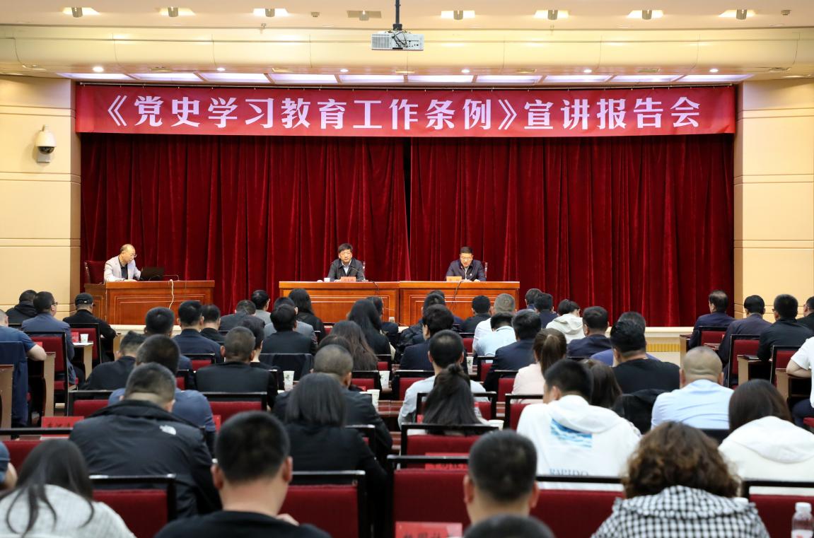 5月8日,甘肅省委黨史研究室主任何天鵬赴蘭州市宣講《黨史學(xué)習(xí)教育工作條例》(以下簡稱《條例》),檢查學(xué)習(xí)宣傳貫徹《條例》情況,調(diào)研指導(dǎo)地方黨史工作。蘭州市委黨史辦、各縣區(qū)委黨史辦相關(guān)負(fù)責(zé)人,西固區(qū)委、區(qū)政府領(lǐng)導(dǎo)和各部門、各鄉(xiāng)鎮(zhèn)街道、各村社區(qū)主要負(fù)責(zé)人參加宣講報(bào)告會(huì)。蘭州市委辦公室分管領(lǐng)導(dǎo),安寧區(qū)委分管領(lǐng)導(dǎo)及相關(guān)部門負(fù)責(zé)人參加座談會(huì)。