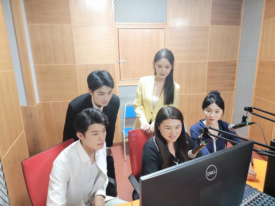 四川傳媒學(xué)院的同學(xué)們?cè)阡浺羰疫M(jìn)行錄制