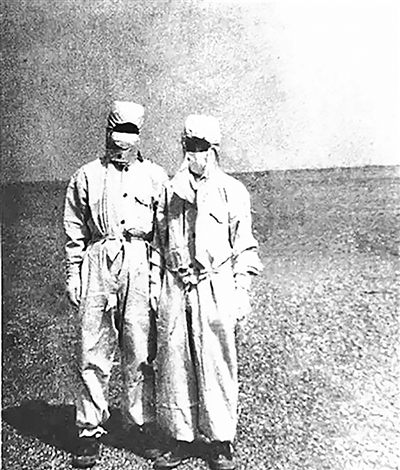 1979年,尋回未爆的核武器彈頭后,鄧稼先(左)與同事合影于新疆核試驗基地的戈壁灘。