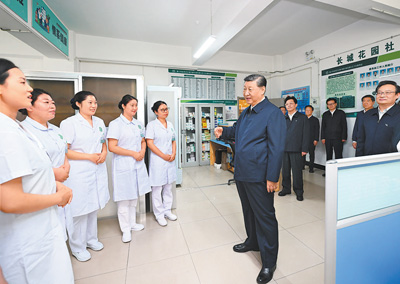 6月19日至20日,中共中央總書記、國家主席、中央軍委主席習(xí)近平在寧夏考察。這是19日下午,習(xí)近平在銀川市金鳳區(qū)長城花園社區(qū)黨群服務(wù)中心社區(qū)衛(wèi)生站同醫(yī)務(wù)人員親切交流。 |
