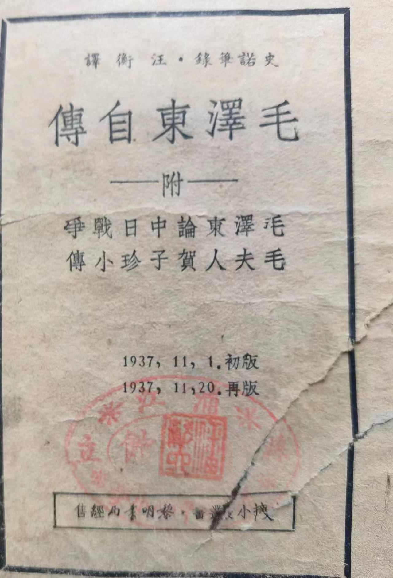 (徐漢松同志捐贈(zèng)的《毛澤東自傳》書影)
