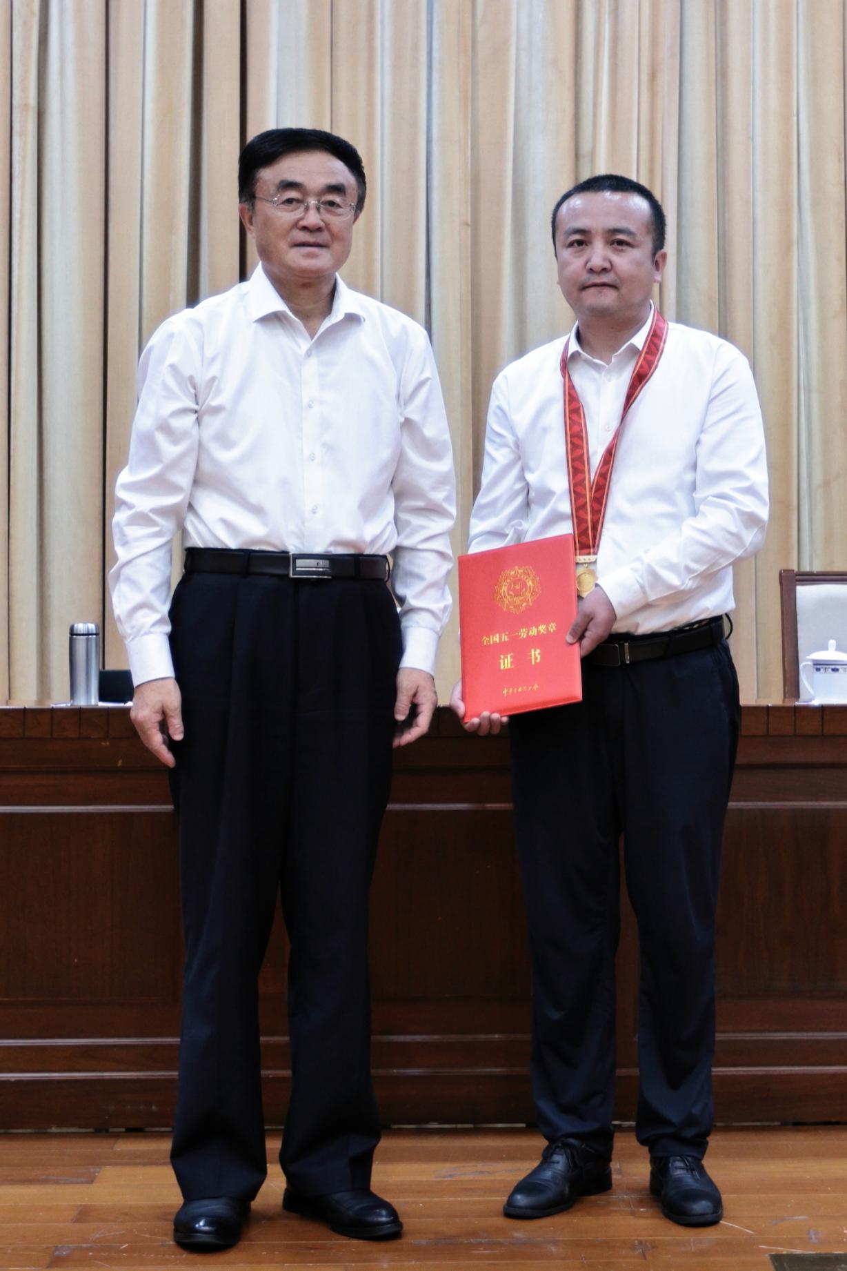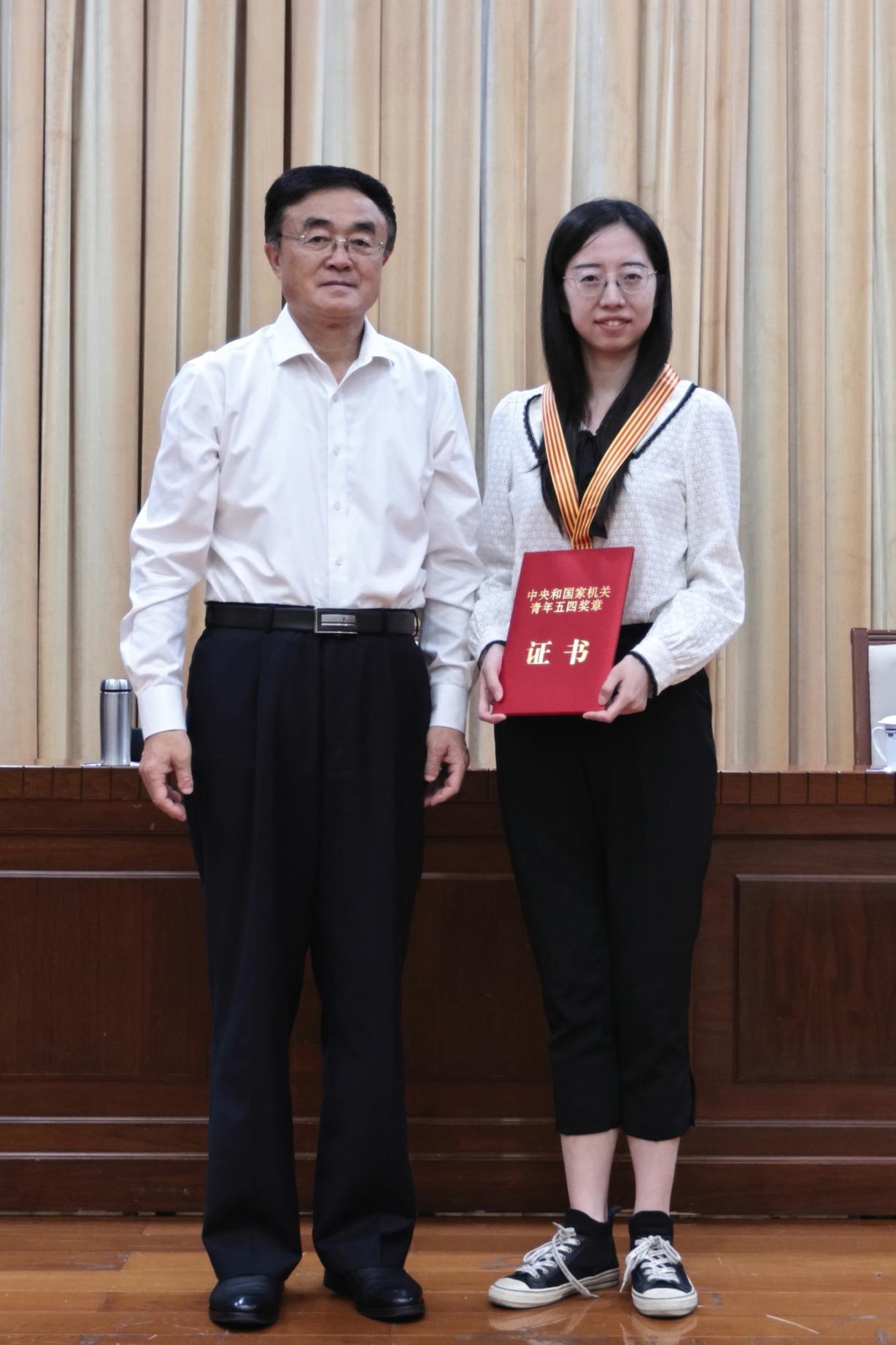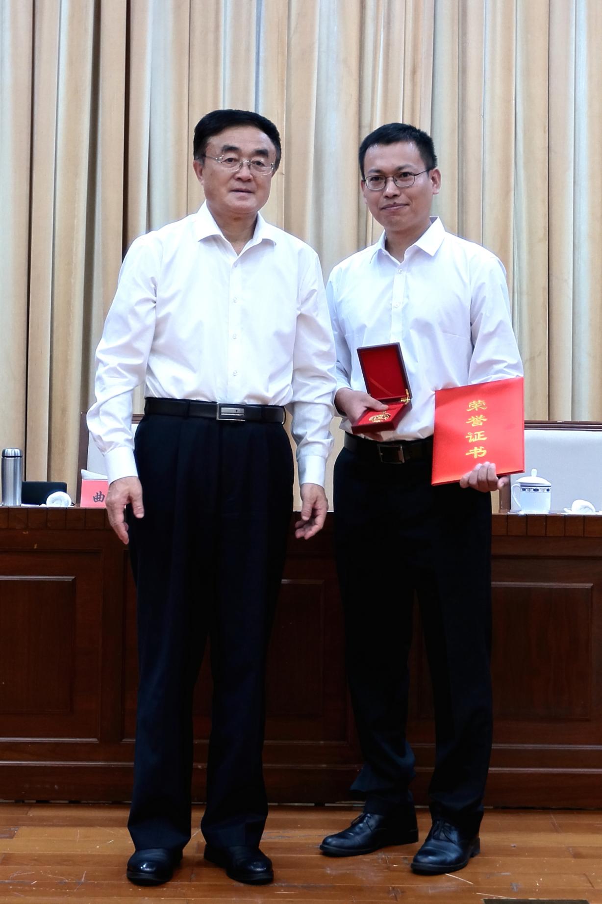 表彰會在雄壯的國歌中開始。院長曲青山為獲獎的個人和集體代表頒發(fā)榮譽證書和獎?wù)拢蚴艿奖碚玫耐竞图w表示熱烈祝賀和崇高敬意!