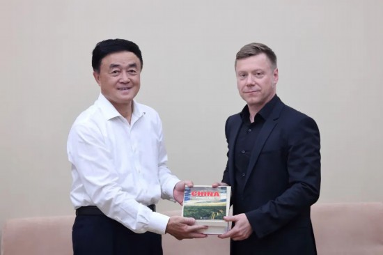 會談期間,曲青山向馬丁·施爾德萬贈送由中共中央黨史和文獻研究院編輯翻譯的《習(xí)近平關(guān)于中國式現(xiàn)代化論述摘編》英文版、《中國共產(chǎn)黨簡史》德文版和他本人所著《中國共產(chǎn)黨百年輝煌》英文版;馬丁·施爾德萬向曲青山回贈《羅莎·盧森堡全集》中文第一卷。