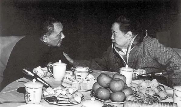 1980 年,鄧小平(左)和宋慶齡在全國政協(xié)舉行的新年茶話會上交談