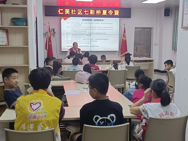 7月19日,研究室為江海區(qū)江南街道仁美社區(qū)的青少年學生送去了一堂“家門口”的黨史課。征集編研科業(yè)務(wù)骨干以“銘記全民族抗戰(zhàn)歷史 弘揚偉大的抗戰(zhàn)精神”為題,為社區(qū)青少年講述了抗戰(zhàn)故事和革命先烈的英勇事跡,使他們對中國共產(chǎn)黨偉大抗戰(zhàn)精神的豐富內(nèi)涵有了更加深刻的理解。