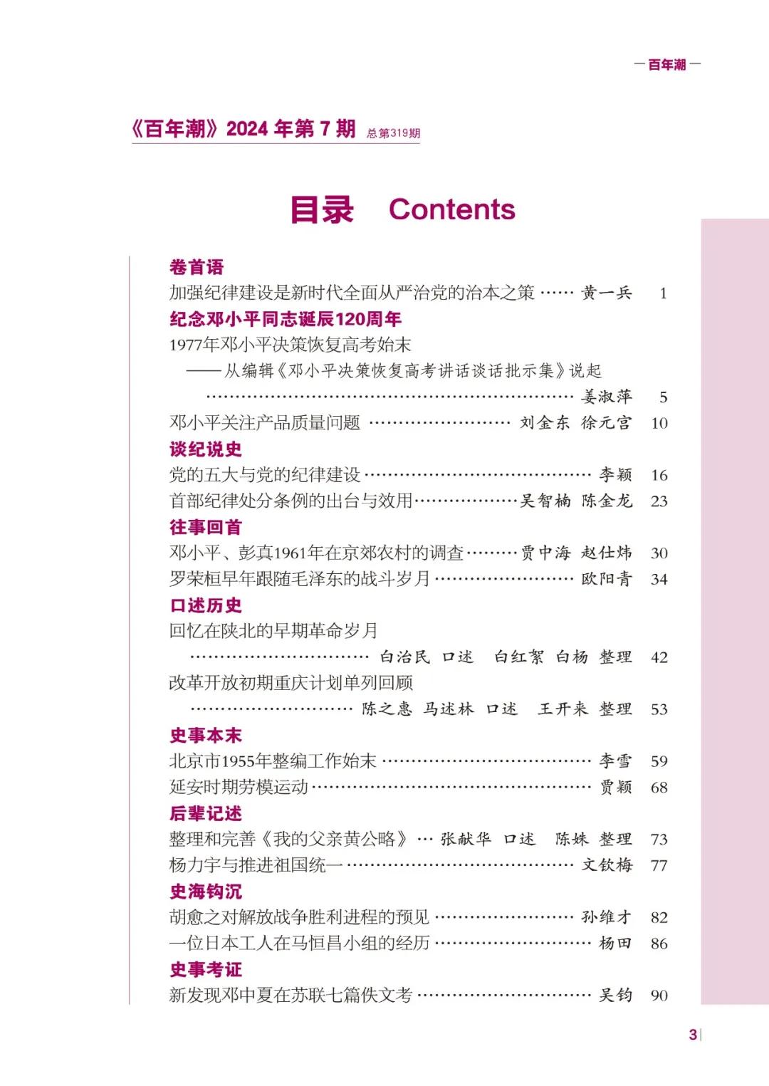 《百年潮》2024年第7期目錄