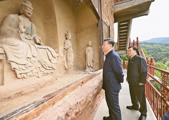 2024年9月10日至13日,中共中央總書記、國家主席、中央軍委主席習(xí)近平在甘肅考察。這是11日上午,習(xí)近平在天水市麥積山石窟考察。 新華社記者 謝環(huán)馳/攝