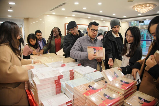 座談交流后,拉美和加勒比國家的媒體記者代表參觀了我院主辦的“思想的歷程——馬克思主義傳播史”展覽,記者們認(rèn)真聆聽講解,了解馬克思主義在中國的傳播歷程。此外,記者代表還參觀了我院編輯翻譯出版的《習(xí)近平外交演講集》(第一、二卷英文版)、《習(xí)近平關(guān)于中國式現(xiàn)代化論述摘編》(英文版)、《習(xí)近平論堅(jiān)持推動(dòng)構(gòu)建人類命運(yùn)共同體》(英文版)(西文版)、《習(xí)近平關(guān)于尊重和保障人權(quán)論述摘編》(英漢對(duì)照)(西漢對(duì)照)、《中國共產(chǎn)黨簡史》(英文版)等理論外宣讀物展示。