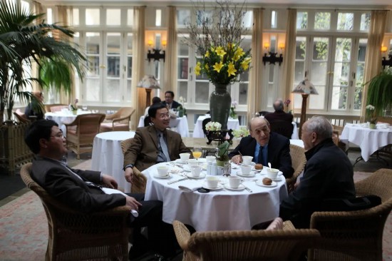 ▲2010年3月與金沖及先生、傅高義教授、章清教授在哈佛大學教授俱樂部