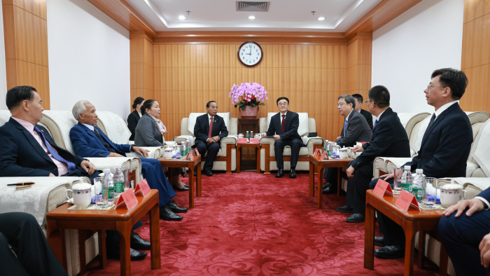 2025年2月28日,中共中央委員、中央黨史和文獻(xiàn)研究院院長(zhǎng)曲青山在北京會(huì)見到訪的由老撾人民革命黨中央政治局委員、中央書記處常務(wù)書記、國家副主席本通率領(lǐng)的老撾人革黨代表團(tuán),并會(huì)同黃一兵副院長(zhǎng)與代表團(tuán)座談交流。