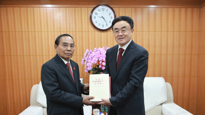 曲青山對(duì)老撾黨代表團(tuán)一行來院訪問表示歡迎,并對(duì)去年10月率中共代表團(tuán)訪老時(shí)受到老方的熱情接待,向本通副主席表示感謝。