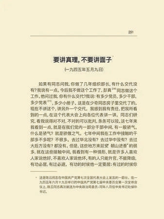 《要講真理,不要講面子》是陳云同志在中國(guó)共產(chǎn)黨第七次全國(guó)代表大會(huì)上發(fā)言的一部分,后收入《陳云文選》第一卷。