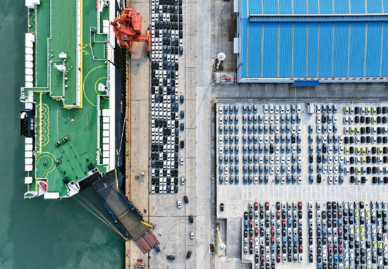 以新能源汽車(chē)為代表的“新三樣”成為新時(shí)代中國(guó)制造靚麗名片。2024年,我國(guó)新能源汽車(chē)產(chǎn)銷(xiāo)量均突破1200萬(wàn)輛。2025年1月汽車(chē)出口量為47萬(wàn)輛,其中新能源汽車(chē)出口15萬(wàn)輛,同比增長(zhǎng)49.6%。圖為2025年2月21日拍攝的江蘇省連云港港東方港務(wù)分公司碼頭裝載出口汽車(chē)的場(chǎng)景。 新華社發(fā) 王春/攝