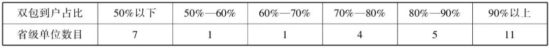 表4 各省、直轄市、自治區(qū)雙包到戶比例分段統(tǒng)計(jì)表