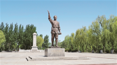 內(nèi)蒙古通遼市開魯縣麥新鎮(zhèn)麥新烈士陵園內(nèi)的麥新塑像。 王立成 攝