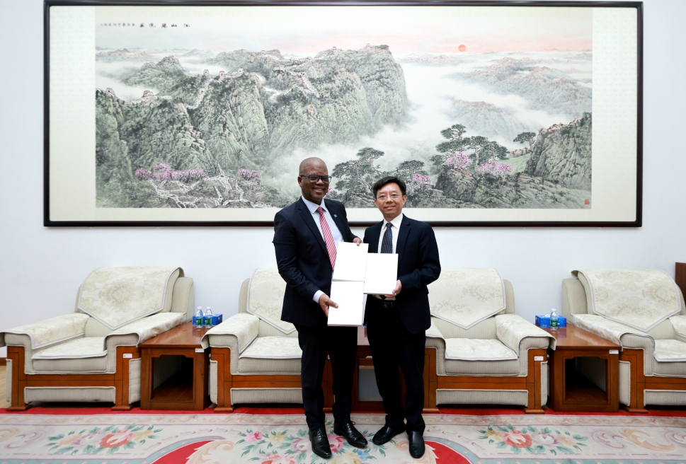 牟建君首先對莫瓦薩一行來訪表示歡迎,并轉(zhuǎn)達(dá)曲青山院長對莫瓦薩的問候。牟建君介紹了我院作為黨的歷史和理論研究專門機構(gòu)的主要職責(zé)和中心工作。他表示,今年年初,習(xí)近平主席與博科總統(tǒng)互致賀電,慶祝中博建交50周年。在兩國元首戰(zhàn)略引領(lǐng)下,中博戰(zhàn)略伙伴關(guān)系發(fā)展勢頭良好,各層級交往不斷深入。中央黨史和文獻(xiàn)研究院致力于建設(shè)中共中央可靠的文獻(xiàn)庫、思想庫、智囊團(tuán),愿同博方一道,在推動雙方政治互信、共同發(fā)展上加強合作,特別是加強歷史和理論交流,增進(jìn)民意相通,造福兩國人民。