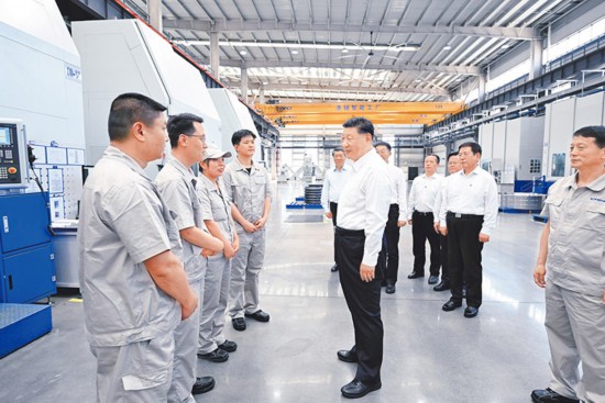 2025年5月19日至20日,中共中央總書記、國家主席、中央軍委主席習近平在河南考察。這是19日下午,習近平在洛陽軸承集團股份有限公司智能工廠考察時,同企業(yè)職工親切交流。 新華社記者 燕雁/攝