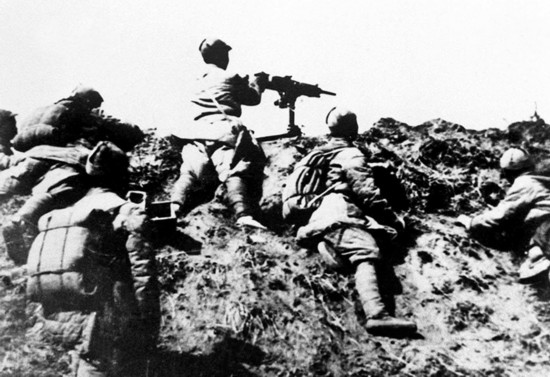 1940年8月至翌年1月,八路軍對日軍發(fā)動(dòng)了百團(tuán)大戰(zhàn)。這是全民族抗戰(zhàn)以來八路軍在華北發(fā)動(dòng)的規(guī)模最大、持續(xù)時(shí)間最長的一次帶戰(zhàn)略性進(jìn)攻的戰(zhàn)役。圖為戰(zhàn)役的第一階段在山西獅垴山血戰(zhàn)中的八路軍機(jī)槍陣地。 新華社發(fā)