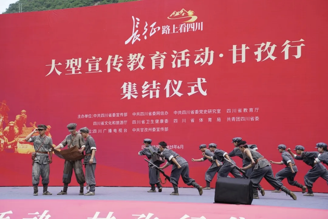 6月17日,由四川省委宣傳部、省委網(wǎng)信辦、省委黨史研究室等8家單位主辦,四川廣播電視臺、甘孜州委宣傳部承辦的“長征路上看四川”大型宣傳教育活動甘孜行集結(jié)儀式在瀘定縣瀘定橋廣場舉行。新聞媒體記者、黨史軍史專家學(xué)者、青少年學(xué)生、文藝工作者和志愿者等代表組成的5支隊(duì)伍及甘孜州干部群眾代表參加活動。