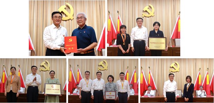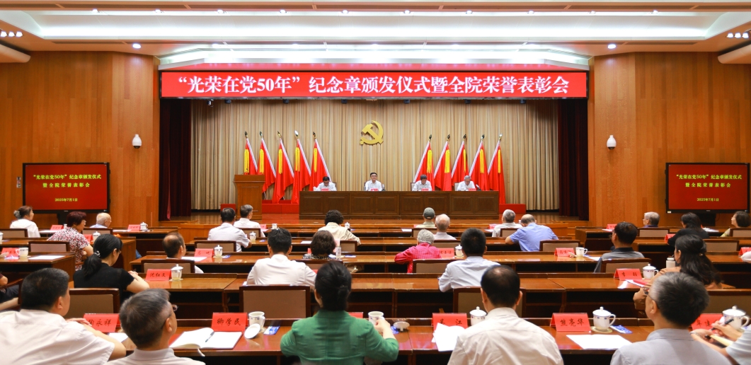 會議在雄壯的國歌中開始。院長曲青山逐一為老黨員頒發(fā)、佩戴“光榮在黨50年”紀念章,為受到表彰的先進集體和先進個人代表頒發(fā)榮譽證書和獎?wù)?,向老黨員致以誠摯祝福和崇高敬意,向受到表彰的先進集體和先進個人表示熱烈祝賀!