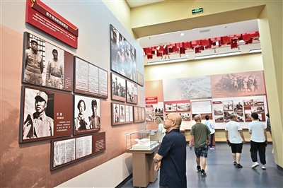 百團大戰(zhàn)是抗日戰(zhàn)爭中的重大戰(zhàn)役,極大振奮了全國軍民抗戰(zhàn)到底的信心。圖為人們在山西省陽泉市百團大戰(zhàn)紀念館參觀。圖片來源:視覺中國