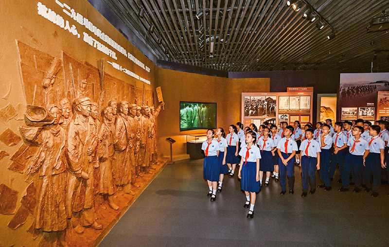 弘揚(yáng)愛國主義精神,必須把愛國主義教育作為永恒主題。2025年7月7日上午,紀(jì)念全民族抗戰(zhàn)爆發(fā)88周年儀式暨《為了民族解放與世界和平》主題展覽開幕式在中國人民抗日戰(zhàn)爭(zhēng)紀(jì)念館舉行。圖為當(dāng)日少先隊(duì)員參觀主題展覽。 新華社記者 陳曄華/攝