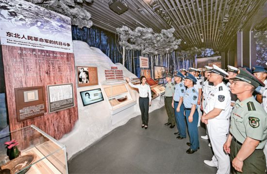 2025年7月7日,紀念全民族抗戰(zhàn)爆發(fā)88周年儀式暨《為了民族解放與世界和平》主題展覽開幕式在中國人民抗日戰(zhàn)爭紀念館舉行。圖為當日解放軍官兵參觀主題展覽。 新華社記者 陳曄華/攝