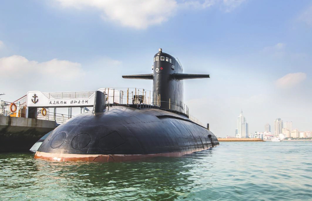 青島波光瀲滟的海面上,一艘黑色水滴線型的核潛艇靜靜??恐?。它是我國自主建造的第一艘攻擊型核潛艇——“長征一號”艇。