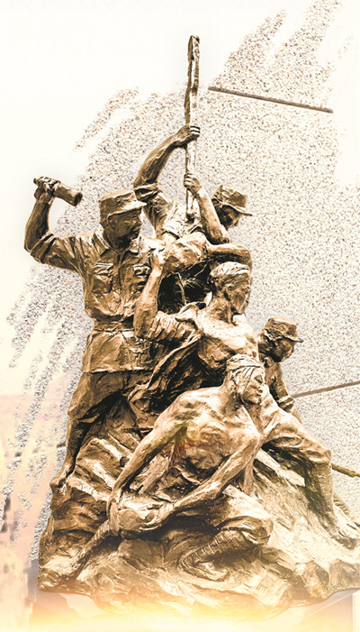 秋風(fēng)呼號,那是英雄馬寶玉在吶喊:“子彈打光了,我們要把槍砸碎。同志們,一個零件也不給敵人得去,把槍扔到崖下去!” 又一群敵人撲上來了。馬寶玉“嗖”的一聲拔出手榴彈,擰開蓋子,用盡全身氣力扔向敵人。隨著一聲巨響,手榴彈在敵群中開了花。