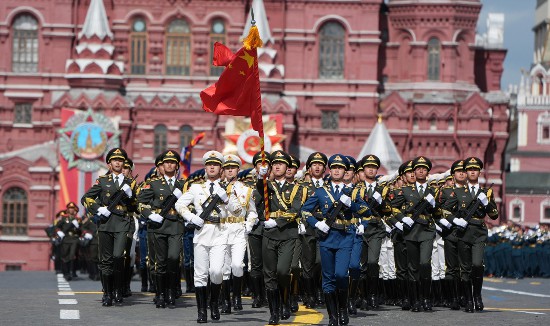 這是5月9日,在俄羅斯首都莫斯科,中國人民解放軍三軍儀仗隊方隊參加紀念蘇聯(lián)偉大衛(wèi)國戰(zhàn)爭勝利80周年閱兵式。新華社記者 賴向東 攝