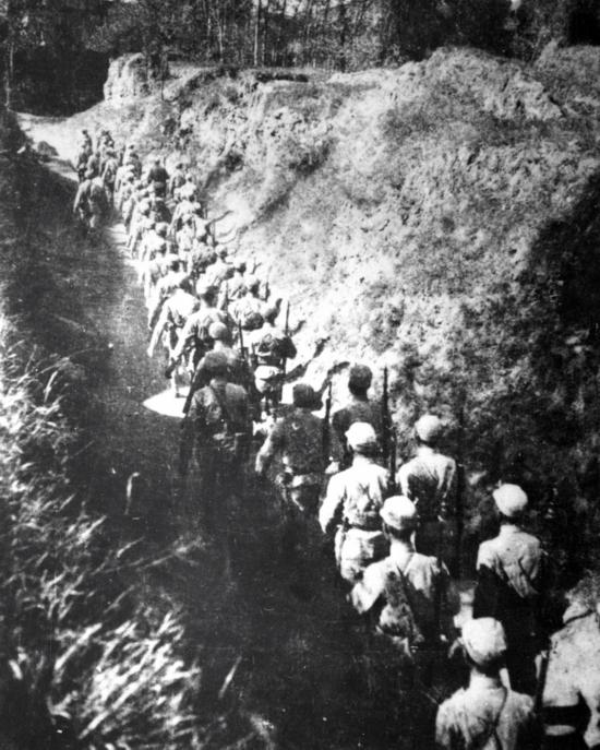 這是1937年9月,八路軍第115師主力開赴平型關(guān)前線。新華社發(fā)(資料圖片)
