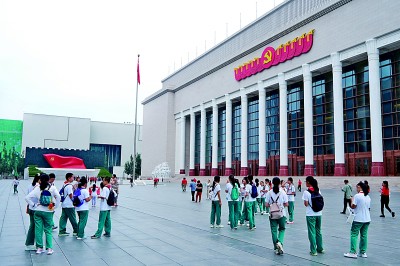中國共產(chǎn)黨歷史展覽館廣場前,觀眾準(zhǔn)備入館參觀。本報記者 郭俊鋒攝/光明圖片