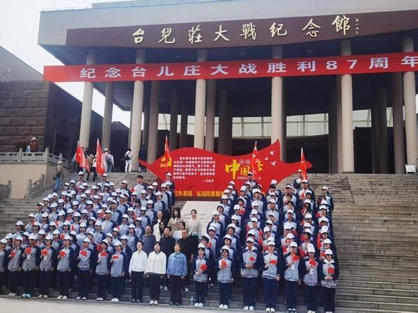 部分中小學(xué)學(xué)生在臺(tái)兒莊大戰(zhàn)紀(jì)念館研學(xué)。受訪者供圖