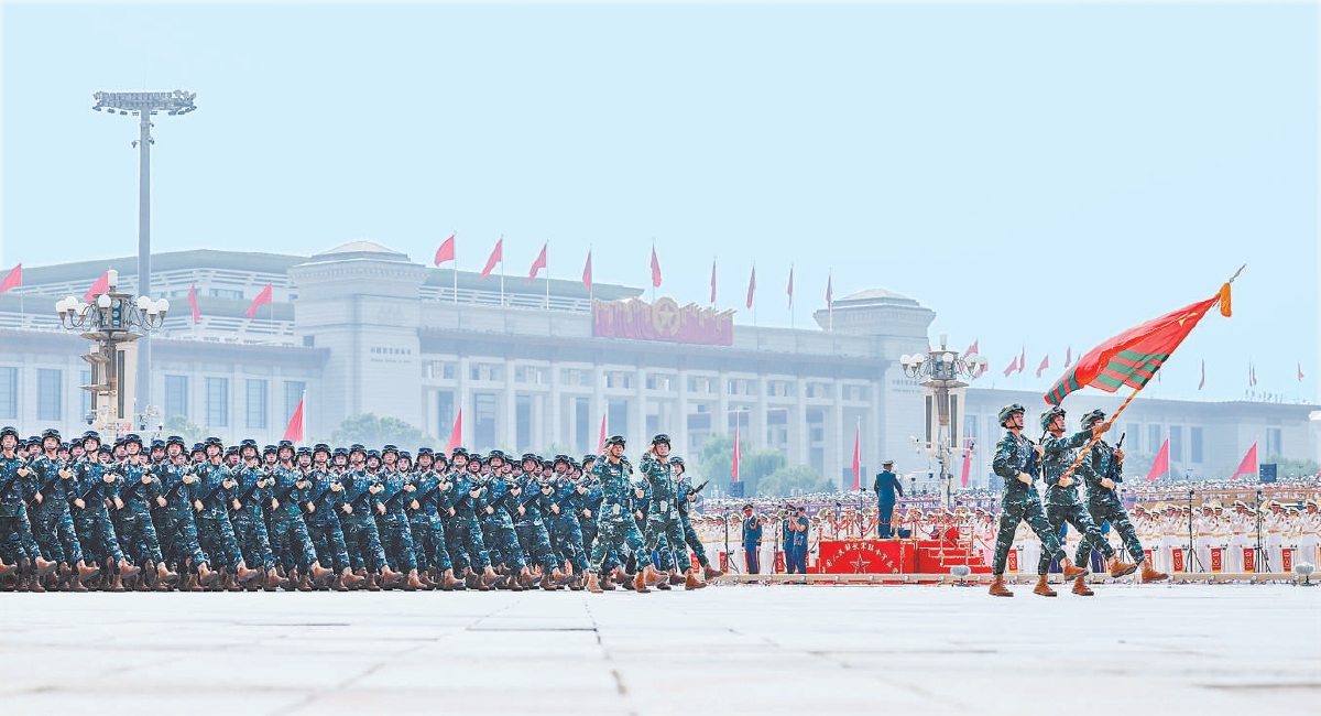 方隊(duì)鏗鏘的腳步向世人昭示:80年前,中國軍隊(duì)為取得世界反法西斯戰(zhàn)爭勝利作出了巨大貢獻(xiàn);今天,中國軍隊(duì)依然是維護(hù)世界和平的堅(jiān)定力量。