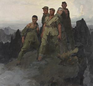 5人雖然是孤軍奮戰(zhàn),卻堅定沉著。他們利用有利地形,奮勇還擊,打退日偽軍多次進攻。為給部隊轉(zhuǎn)移爭取更多時間,他們主動吸引數(shù)百名敵人向自己追擊。他們撤到哪里,日軍的炮火就跟到哪里。危急關(guān)頭,為不暴露部隊轉(zhuǎn)移路線,保障主力安全,班長馬寶玉帶著戰(zhàn)士們,把敵人引到狼牙山的最高峰——棋盤陀。